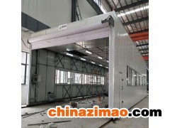 整體移動式噴漆間的設計目的,是為了滿足較大型工件 打磨或噴漆的需要。一般情況下每套房體對應2~3個排風凈化工位,哪個工位上的工件需要噴漆時,房體則行走移動到那個工位,其他工位可以繼續打磨工作,待 房體內的工件噴漆完畢后,再控制移動房體行走到打磨完畢后的工件工位,如此設計可以實現大型工件的不間斷連續噴漆工作。房體為鋼結構構造,房體立柱下面設置有兩臺電動驅動行走機構,行走機構沿地面軌道行走。移動房體兩端設置有電動卷簾大門,房體行走時,大門升起,待到達位置時,大門降落關閉。大門與行走機構由電氣控制部分連鎖控制,大門完全升起后,房體才可移動行走。