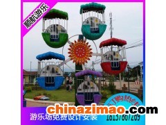 母子觀覽車又稱兒童觀覽車,該設備跟大型摩天輪其實是一樣的造型,只是在尺寸上做了調整,變成了迷你型的。“母子觀覽車”還特別設計出了卡通造型的座艙,從視覺上吸引孩子們的注意力,同時觀覽車能夠很好的滿足孩子們登高眺望,俯瞰四周的愿望,雖然不能瀏覽到整個城市的景貌,但是也可以觀看到整個公園或廣場的情形。同時是一款親子互動設備,能很好的跟父母進行互動溝通,因此很受孩子們及家長的歡迎。