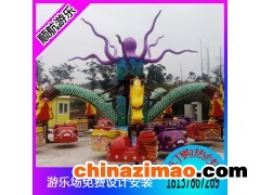 旋轉大章魚是一種旋轉類游藝機,貌似章魚,形似蛟龍,高低起伏,隨時而動,每個座椅可做雙人,坐上后如魚得水、戲浪歡騰,又似蛟龍在空中飛翔,轉動速度可快可慢,可以隨時調整,是一款老少皆宜的新型游藝機。