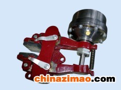 3、裝時首先通入壓力空氣,是活塞桿5縮回氣缸內,然后將摩擦塊12在垂直制動盤的方向裝如制動盤內,再將基座9水平固定在剛性機座上,使其中心與制動盤厚度中心成一直線,安裝位置尺寸見結構示意圖.