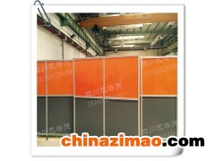 防護屏四周打孔置金屬吊環,使用尼龍扎帶固定在框架上,屏風配有移動滑輪,可任意移動方位,框架便于拆卸更換。