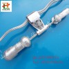 在高壓架空線路上,靠近絕緣子兩側(cè)的導(dǎo)線上常掛一個(gè)小錘,這種小錘叫防振錘,是為了減少導(dǎo)線因風(fēng)力扯起振動(dòng)而設(shè)的。高壓架空線路桿位較高,檔距較大,當(dāng)導(dǎo)線受到風(fēng)力作用時(shí),會(huì)發(fā)生振動(dòng)。導(dǎo)線振動(dòng)時(shí),導(dǎo)線懸掛處的工作條件最為不利。由于多次振動(dòng),導(dǎo)線因周期性的彎折會(huì)發(fā)生疲勞破壞。當(dāng)架空線路檔距大于120米時(shí),一般采用防振錘防振。