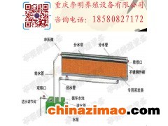 1、“水簾-負壓風機”降溫系統是由紙質多孔水簾、水循環系統、風扇組成。未飽和的空氣流經多孔、水潤的水簾表面時,大量水分蒸發,空氣中由溫度體現的顯熱轉化為蒸發潛熱,從而降低空氣自身的溫度。風扇抽風時將經過水簾降溫的冷空氣源源不斷的引入室內,從而達到降溫效果。