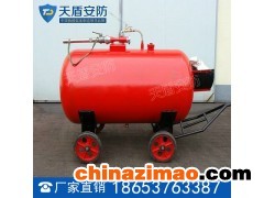 泡沫滅火設備移動式泡沫罐(泡沫比例混合裝置),由消防、推車、常壓泡沫罐、負壓比例混合器、噴射設備(泡沫發生器)、水龍帶、安全閥、控制閥門及一些輔助零部件等組成。容積50-500L,流量4-8(L/S)。