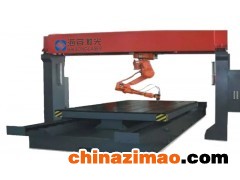三維激光切割機(jī)HR-1000,充分展示光纖激光器柔性傳輸?shù)奶攸c(diǎn),與工業(yè)機(jī)器人相結(jié)合,對(duì)三維產(chǎn)品進(jìn)行空間切割。三維光纖激光切割機(jī)器人是由專用光纖激光切割頭、高精度電容 式跟蹤系統(tǒng)、光纖激光器以及工業(yè)機(jī)器人系統(tǒng)對(duì)不同厚度的金屬板材進(jìn)行多角度、多方位柔性切割的先進(jìn)的激光切割設(shè)備,其利用工業(yè)機(jī)器人靈活和快速的動(dòng)作性能,根據(jù)用戶切割加工工件尺寸的大小,通過(guò)將機(jī)器人進(jìn)行正裝或倒裝,并針對(duì)不同產(chǎn)品、不同軌跡進(jìn)行示教編程或離線編程,通過(guò)光纖激光切割頭對(duì)不規(guī)則工作進(jìn)行三維切割;利用光纖將激光傳輸?shù)角懈铑^上(光纖激光切割頭上配備專用光纖隨動(dòng)裝置和光路傳輸裝置),再利用聚焦系統(tǒng)進(jìn)行聚焦,可對(duì)多種三維金屬板材進(jìn)行多方位的切割。
