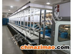(4)設備中間采用輸送帶輸送成品,兩側為單條雙通道物流輸送線;外側通道每個工位有一個物料擋桿,且可以任意調節位置;每組的最后2個工位配排風系統;