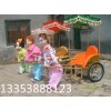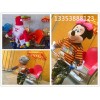 機器人手拉車是一種可供人乘坐的可行走的兒童游樂設備。給機器人穿上漂亮的衣裳,并用蓄電池作能源,對機器人充一次電可連續行走3個小時左右;機器人和真人一樣邁步行走。根據型號不同,載重在70公斤以下。機器人的行走安放一種電動機械裝置作為行走裝置,采用兩套不規則四邊形曲柄連桿機構,由電動驅動曲軸帶動曲柄連桿機構作交替運動,模擬人走路。而機器人的轉向機構則采用方向盤通過鋼絲繩來操縱行走機器的轉向,由于方向盤是通過轉動方式來控制車的方向,操作十分方便,設計更加合理。