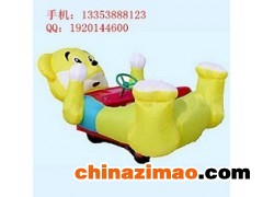 配套設置:單人車:一塊12V20A電瓶、雙人車:兩塊12V20A電瓶串聯成24V、6、載重:150kg7、適用年齡: 3歲以上兒童三、充氣電瓶車(氣模車)產品介紹(1)產品介紹可愛動物充氣電瓶車是一項通過將氣模與電動車進行合理結合的,人坐在氣模上能自由地行駛,也可隨意的更換游樂場地,極大的改善以往游樂設備的場地局限性,而且該產品可更換外觀造型改變了以往游樂設施的單一性,目前有喜洋洋系列,熊出沒系列、小白兔、飛機、鱷魚和孫悟空等70多種,充氣電瓶車極大增強了和觀賞性。