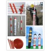 外形呈圓形,長2.5m,管體預留縱向開口,安裝時可將地錨拉線從開口處卡入警示管,并用金屬緊固圈將警示管下端固定,中間入上端用專用金屬卡固定,橡膠帽安裝在警示管上端拉線上,以防人為移動管體,警示管外表用熒光膜制成紅白相間,視覺沖擊力強,當遇車燈照射時,色彩更鮮艷奪目。