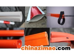 外形呈圓形,長2.5m,管體預留縱向開口,安裝時可將地錨拉線從開口處卡入警示管,并用金屬緊固圈將警示管下端固定,中間入上端用專用金屬卡固定,橡膠帽安裝在警示管上端拉線上,以防人為移動管體,警示管外表用熒光膜制成紅白相間,視覺沖擊力強,當遇車燈照射時,色彩更鮮艷奪目。