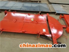 由門框1、門扇2、平衡機構3、配重4及(閉鎖5)等組成。門框采用鋼制焊接。門扇采用鋼結構外附冷鋼板,與聯桿相連接。調節配重大小,風門能可靠關閉。