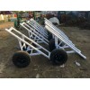 電線桿炮車簡稱運桿車,其作用是在農網改造過程中用來托運電線桿的作用,電線桿運桿車參數 電線桿炮車圖片,其材質為優質金屬加飛機輪胎。在農網改造施工過程中,電線桿的托運非常受限制,這時候一般會使用到電線桿炮車,也叫做電線桿運輸車,參數:主要由于飛機輪胎和加固車架組合而成,大小分為兩種規格,小型號可托運8米-12米長電桿,大型號可運輸15米電桿,底部輪胎有汽車輪和飛機輪胎兩種,常用型號為后者,在使用1-2年之內一般不會變形,使用壽命比較長,安全系數高,托運非常省力方便。工具外觀顏色可以根據要求噴涂。可自由定制。