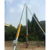 人字抱桿和三角立桿機(jī)的區(qū)別是前者為兩根型,后者是三根組合型,兩根型可以在復(fù)雜的山區(qū)地形操作,三根型立桿器主要在比較平坦的地形使用,管材的質(zhì)量要求非常高,一般為國(guó)標(biāo)鋁合金型材,這樣保障穩(wěn)定性,在立桿的過(guò)程中4-5人即可完成作業(yè),作為中型起桿工具,它的價(jià)值非常不錯(cuò),在起吊完成一半的時(shí)候可以用吊車等大型工具將電線桿推正,這樣就完成了一次完整的立桿作業(yè),需要注意的是,立桿機(jī)在使用的時(shí)候,角度越大,電線桿起吊的難度越大,所以在使用的時(shí)候要調(diào)整好正確的角度。合理使用才能讓工程事半功倍,管式三角立桿機(jī)參數(shù) 鋁合金三角扒桿圖片。起吊工程完成。