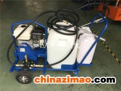 配備清洗專用油箱容積20L,作業結束后,使用專用清洗油箱將輸出管及噴嘴內的乳化瀝青排除干凈,使輸出管、噴嘴保持暢通;遇到泵體內瀝青固化情況,可使用配備的油杯進行清洗,瞬間即可疏通堵塞;