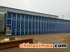 移動式伸縮噴漆房 工業車間噴漆軌道式移動伸縮房 整個伸縮棚由以下幾部分構成:門框架、帆布支撐網、剪式伸縮機構、阻燃PVC帆布、驅動機構等部分組成。門框架采用工業型材制成,是驅動電機直接帶動的部分,整個伸縮機構穩定運動的關鍵所在。大門框架上設置有開關按鈕并行程開關,用以自動控制大門的伸縮。除去門框,其余部位就是帆布支撐網,是阻燃帆布安裝連接的骨架,由多組型材骨架構成,并通過剪式伸縮機構將整個相對獨立的骨架連接在一起,形成一個穩定的整體。在每兩個帆布支撐網之間,采用剪式伸縮機構相連,其結構尺寸決定了伸縮量,同時為了保證上下都能同時實現伸縮動作,在每側上下各布置一套剪式伸縮機構,兩者之間通過連桿形成一個同步運動機構。在整個網架之間采用工業阻燃PVC帆布,這是形成相對封閉作業間的“墻板”,也是保證空氣有序流動的“房體”。安裝時每兩個支撐網采用一塊工業帆布。在噴漆室的大門上安驅動部分。驅動部分采用減速電機,傳動到多節長軸上,再由長軸兩端鏈輪同步傳動到兩側主動輪上。整個驅動前進、后退采用三級保護:雙向兩級行保護軌道終端設置限位車擋;門柱上邊有控制盒,操作方便。移動式伸縮噴漆房 工業車間噴漆軌道式移動伸縮房
