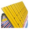 裝配式板壩防洪子堤,當水位上升、有可能漫溢堤壩時,可在堤頂上迅速搭接成防洪子堤。子堤由多個單元裝配而成;每個單元包括折疊擋水面板和可折疊的支撐角架兩部分。每組單元裝配完成之后,再通過肋板和緊固件裝配相互連接而成為一個完整的子堤。面板底部配有定位固定樁,可將子堤固定在堤頂之上。裝配式板壩防洪子堤突破傳統思維模式,摒棄傳統筑堤材料、工藝,是一種全新、快捷、廉價、環保型防災減災器材。具有依水治水、高效快捷;組壩靈活、適應性強;便于儲運、造價低廉;回收復用、綠色環保等特點。主要用于沙壤土、壤土、粘土及混凝土、柏油等軟質堤防作應急防漫堤防險。搶護堤防和大壩的漫溢浪坎險情,防止由于堤防防洪標準低或遭到超標準特大洪水,江河水位猛漲并超過堤頂高程而造成漫溢成災;防止在汛期高水位,由于遭受強風大浪河水翻越堤頂而造成局部堤段浪坎險情。