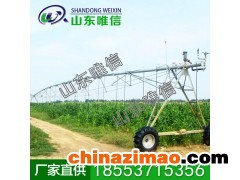 農用平移式噴灌機的缺點主要是,噴灑時整機只能沿垂直支管方向作直線移動,而不能沿縱向移動,相鄰塔架間也不能轉動。為此,平移式噴灌機在運行中必須有導向設備。另外,平移式噴灌機取水的中心塔架是在不斷移動的,因而取水點的位置也在不斷變化。一般采用的方法是明渠取水和拖移的軟管供水。