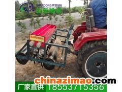 播種機使撒出的種子在播種地塊上均勻分布的播種機 。常用的機型為離心式撒播機 ,附裝在農用運輸車后部。由種子箱和撒播輪構成。種子由種子箱落到撒播輪上,在離心力作用下沿切線方向播出,播幅達8 ~12米。也可撒播粉狀或粒狀肥料、石灰及其他物料。撒播裝置也可安裝在農用飛機上使用。作業時,由行走輪帶動排種輪旋轉,種子自種子箱內的種子被按要求的播種量排入輸種管,并經開溝器落入開好的溝槽內,然后由覆土鎮壓裝置將種子覆蓋壓實。出苗后作物成平行等距的條行。