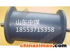 橡膠地輥一種用于礦山斜井井筒提升托起鋼絲繩的橡膠地滾,由滾體和滾軸組成,其特征在于所述的滾體為橡膠滾體,滾體兩端高于平面,滾體為空心,在其空心兩端各裝一軸承,滾軸串入滾體空心間安裝在軸承上,軸承外配有密封圈。