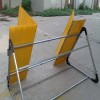 (2)折疊式擋水面板:研制的折疊式擋水面板 是在面板之間,使用連接軸 將面板相互連接成整體,不用時 數(shù)塊面板可以折疊成一體 減少所占空間。使用時 可以瞬間展開 提升組裝速度。折疊式擋水面板采用波紋玻璃鋼材料或特制的彩鋼板,鋁合金板,防水型PVC板 通過專用固定裝置與橫梁連接成一體。其作用:一是作為連接件將相鄰角架連接起來,組成壩體承力載體;二是作為鋼性連接板。面板底部配有定位固定樁。由圓鋼壓型而成。根據(jù)堤基不同,有兩種使用方法:在軟質(zhì)堤基應(yīng)用時倒置于溝槽中起抗位移作用;在硬質(zhì)堤基應(yīng)用時起定位擋水防滲板和壓實止水彈性體的作用。