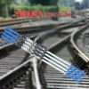本軌距尺超高測量范圍為正負150mm,同樣使用本尺測量超高時,將軌距尺兩端的搭軌座分別搭在兩股鋼軌上,調整度輪盤使水準泡氣泡居中,此時指針指示刻度盤的數值即為超高。