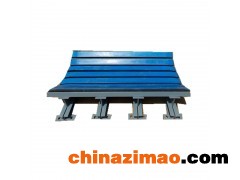 型單雙側耐磨式犁式卸料器,是以電液推桿為動力源,工作時通過推桿伸出驅動桿,帶動框架前進完成機頭下落,并支撐起平托輥組,使膠帶工作面平直,機頭下沿與膠帶面貼合緊密,將膠帶上物料寫入斗中,送到需要場所,卸料完畢后,啟動電液推桿而縮回驅動桿,帶動框架后退,犁頭上抬,可變托輥組由平行變回槽形,讓物料平穩(wěn)通過。(電液推桿的動作原理見推桿部分)