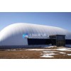 氣膜煤場建筑周期迅速,省時省力,由于氣膜材料自重輕、體積小,膜體在工廠已經全部成型,現場只是將很少的連接點和設備連接上就可以,所以安裝周期在一周左右就能完成。展冀氣膜煤場不僅做到了全封閉,還根據煤塵特性,加裝了降塵減排的設備,在室內煤塵濃度過高時,系統會自動開啟降塵系統進行灑水動作。保證室內的空氣質量,確保作業操作人員的健康和安全。室內加裝瓦斯檢測設備,實時檢測室內的突發狀況,做到全方面的安全保護措施。