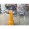 2、用2~3人將氣動植樁機抬放于樁的上端,再用固樁卡盤將樁推至中心(樁徑小于100mm時,要使用所配置合適的樁帽),然后,稍微松開卡盤,使樁在卡爪內處于自由狀態。