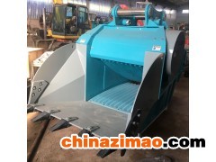 顎式破碎斗是一種機架外形成鏟斗狀的新型液壓破碎屬具,作為挖掘機的配套屬具,在使用時,該裝置以挖機臂為操作載體鏟裝物料,并對鏟裝的建筑垃圾或物料進行破碎處理,從而可以得到所需求的物料塊度以及可回收有用材料。通過現(xiàn)場挖掘、現(xiàn)場破碎、現(xiàn)場回收利用,實現(xiàn)建筑垃圾資源化、減量化、無害化,不僅大大減少了運輸量,節(jié)省填埋費,提高了回收利用率,而且節(jié)約了大量填埋用地,減少對環(huán)境的污染,還能減少對天然砂石的開采,保護了自然資源,符合國家可持續(xù)發(fā)展戰(zhàn)略。該裝置具有結(jié)構(gòu)靈活,  工作可靠,適應性強。成本低,易維護等突出優(yōu)點,還可廣泛應用于廣山開采、道路維護與建設等行業(yè)中。