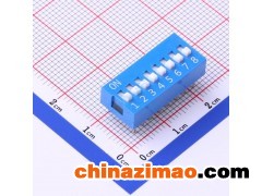 撥碼開關(guān)8位,2.54mm,180度藍(lán)色,側(cè)插凸柄 撥碼開關(guān)DS-08BLP