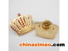 徽章.此產品材質一般為青銅、鐵、鋅合金、鋁片等,工藝有蝕刻、沖壓,合金壓鑄等,表面上色效果有烤漆、軟琺瑯等。電鍍效果有鍍金、鍍鎳、鍍雅鎳、鍍黑鎳、鍍霧金等。配件一般用安全別針或蝴蝶帽,也有客戶選擇高級卡帽和橡膠帽。普通膠袋包裝、打樣時間7-8天,做貨時間8-10天。