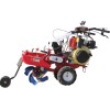 (1)機(jī)器在使用前要詳細(xì)閱讀掌握發(fā)動(dòng)機(jī)說明書,檢查各傳動(dòng)緊固部位和操作部位,對發(fā)動(dòng)機(jī)要按照說明加注柴油。主機(jī)齒輪箱最好應(yīng)加入雙曲線齒輪油,主機(jī)平放時(shí),加至進(jìn)油口高度以下5 cm即可。帶油位檢查口的,加至檢查口高度即可。齒輪箱必須每天工作前檢查一次;(2)根據(jù)作業(yè)需要對所購輔機(jī)進(jìn)行聯(lián)接緊固和調(diào)整,不得帶故障作業(yè);(3)啟動(dòng)柴油機(jī)時(shí),應(yīng)將離合分開,擋位為空擋,油門適當(dāng)。發(fā)動(dòng)機(jī)正常運(yùn)轉(zhuǎn)后調(diào)整好擋位,推動(dòng)油門合上離合,即可操作;(4)旋耕和除草時(shí),阻力桿應(yīng)在壓力下插入土內(nèi)形成前進(jìn)阻力,以阻力大小控制刀具切入深度,同時(shí)還應(yīng)配合擋位高低以適應(yīng)不同土質(zhì)耕作的需要。(5)臨時(shí)停止作業(yè)時(shí),可分開離合器,也可將擋位置于空擋,但不宜長時(shí)間空擋,以免導(dǎo)致機(jī)件磨損;(6)及時(shí)檢查機(jī)器各部件是否正常并進(jìn)行必要的維護(hù),以避免故障發(fā)生和擴(kuò)大;(7)特別注意