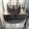 在試驗(yàn)機(jī)的上橫梁上裝有調(diào)節(jié)絲杠,大手輪及螺母絲杠可調(diào)整試驗(yàn)機(jī)的空載高度,絲杠下端裝有球座與上壓板。下壓板置與油缸的活塞上,當(dāng)試件與上壓板接觸時(shí),上壓板球座能自調(diào)正平衡、使試件與上下壓板保持水平。下壓班上刻有試件定位用的刻線,做試驗(yàn)時(shí)試件要對(duì)準(zhǔn)刻線,下壓板下面設(shè)有防塵罩殼,防止或減少活塞升降時(shí)粉塵進(jìn)入油缸,損壞缸體或油封。活塞與油缸間設(shè)有密封裝置,可以防油外泄,但使用時(shí)活塞仍有微量油外泄時(shí),在缸體頂端有環(huán)型油槽,并有泄油通道排出,流回大油箱。