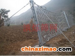 適用于建筑設施旁有緩沖地帶的高山峻嶺,把巖崩、飛石、雪崩、泥石流攔截在建筑設施之外,避開災害對建筑設施的毀壞 的常用規格:[鋼柱(間距10M),帶消能環的∮16雙支撐繩和∮16“人”字形上拉錨繩(每跨6個消能環),∮16側拉錨繩(單繩),◇/08/200/4*5㎡鋼絲繩網,∮8縫合繩,格柵網] 環形防護網: