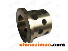 該產品屬于滑動軸承系列,其法蘭的結構使軸向定位變得簡單,更經濟。降低軸承摩擦扭矩、提升其高剛性及良好的回轉精度。在高力黃銅(主要化學成份 Cu Al Mn Fe Ni Zn 百分比分別為:60~66% 5.0~7.5% 2.5~5.0% 2.0~4.0% 0.2~0.5% 22~28% .)的基體上,鑲嵌石墨或MoS2固體潤滑劑的一種高性能固體潤滑產品。它突破了一般軸承依靠油膜潤滑的局限性。在使用過程中,通過摩擦熱使固體潤滑與軸摩擦,形成油、粉末并存潤滑的優異條件,既保護軸不磨損,又使固體潤滑特性永恒。這類軸承的優勢在免維護性和高承載能力,特別適用于重載作用在軸承的一側并且只是擺動運動的工況