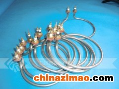 環形加熱棒運用鎧裝電熱線原理,采用性能優良的鎳鉻電阻(熱)絲,精確的繞制并提供準確的熱功率,每條電阻絲與引出棒之間新工藝牢固地連接,因此具有理想的工作壽命。電阻(熱)絲與保護管之間采用高純度氧化鎂絕緣物質,具有良好的電絕緣性和熱傳導性。廣泛應用于電子行業真空鍍膜設備中烘烤加熱,溫室、烘道加熱,噴漆和環氧樹脂處理,空氣及其它氣體加熱,熱成型、熱處理、回火和退火裝置,干燥設備的加熱。
