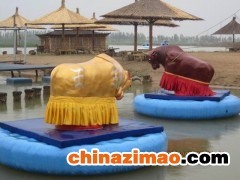 滎陽市豫星游樂設備廠隆重推出新品---瘋狂斗牛機。該產品為一頭仿真的機器牛,由電腦自動控制,在牛的怒吼聲中,其模仿真牛忽上忽下、忽快忽慢、忽甩忽撞、蠻力十足,若想征服它可要使出渾身解數,驚險異常,極大迎合了當今都市人征服欲望強、尋求刺激的心理。