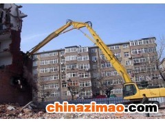 ?。?)三段式加長臂拆除機可加長臂到16-36米,它主要適用于高層建筑的拆解等工程。